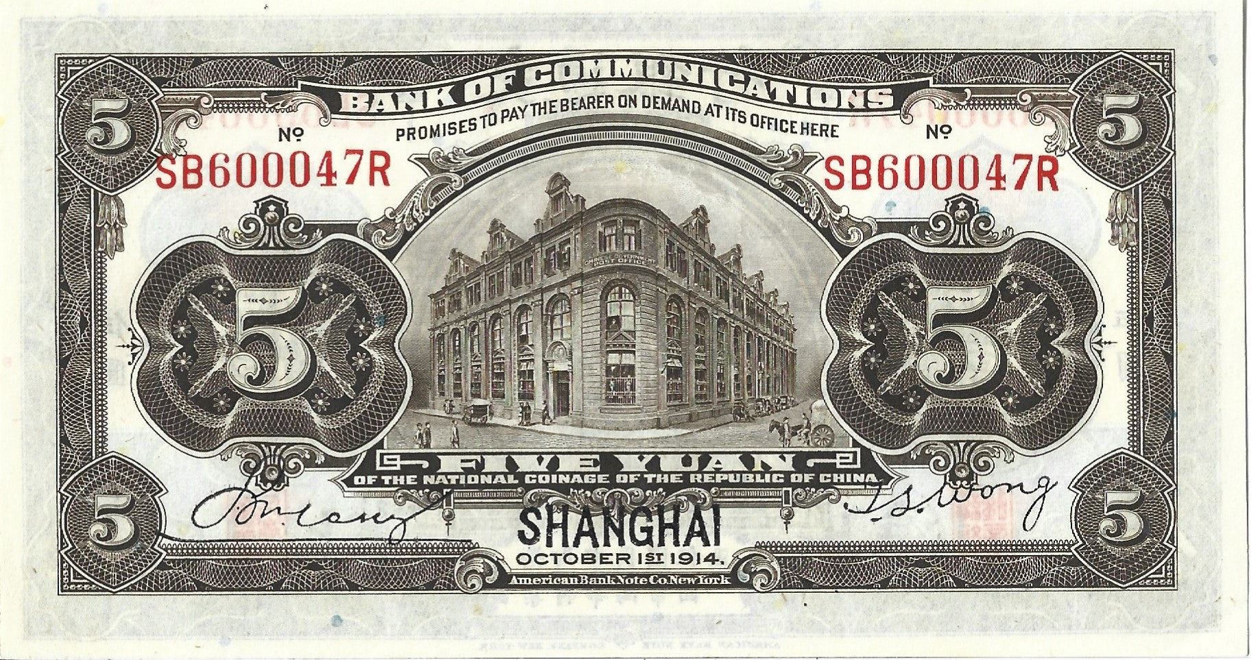 Chiny 5 Yuan 1914 - UNC